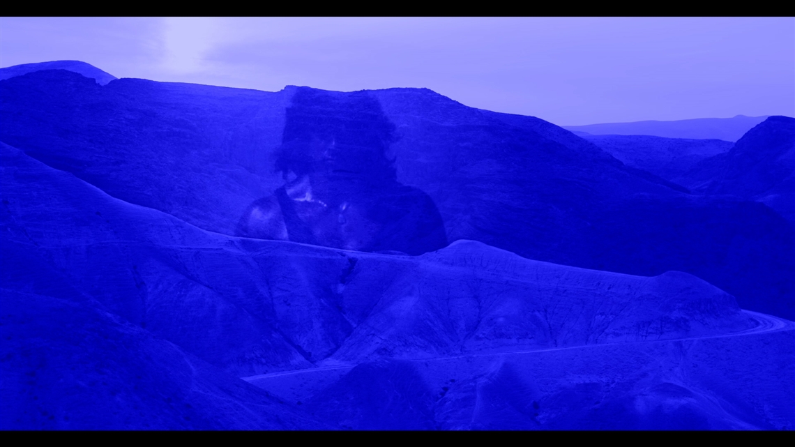 כאשר הצייר ואיש המלאכה בשיר אבו רביע צופה בסרט "רמבו", הוא רואה הרבה מעבר לסילבסטר סטאלון. בשטחי המדבר הפתוחים בשיר רואה את הנגב ואת השטחים הנרחבים שנושלו מהבדואים וממשפחתו. בשנות ה-80 בשיר עבד בהפקה של הסרט "רמבו" כאיש אפקטים מיוחדים. היום חוזר בשיר ללוקיישנים ומוצא בהם שאריות שנותרו מאחור בחול. "מתחת לשמש כחולה" מספר כיצד הוסבו שטחי מדבר לשטחי אש ושימשו כלוקיישנים לסרטים עתירי תקציב, ועל האופן בו סיפורים ודמיונות מושלכים אל שטחי המדבר.